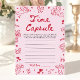 Skapa en meningsfull souvenir med detta söta baby shower-spel, Time Capsule! Designat i en romantisk rosa valentinepalett, har detta handritade kort söta hjärtan, lekfulla slingor, charmiga klotter och mjuka coquette-detaljer som perfekt kompletterar temat A Little Sweetheart baby shower.