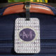 En snyggt vit och strålande rosa diamantharlequin i mönster med en lila i mitten med glam glitter som kan skräddarsy den med brev och namn. Trendigets chic vibes.