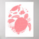 Sött rosa havstemat affisch med tropiska fiskar och havssköldpaddor. De vackra havsdjuren simmar tillsammans i ett vackert korallrev. Ett utmärkt sätt att lägga till en marin vild touch i barnens sovrum.