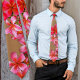 Djärvt blommigt tryck slips med rosa plumeria blommor på en sandbrun bakgrund. Realistiska tropiska blommor i mörkt och ljust rosa är det perfekta tillbehöret när man klär sig för att delta i en sommarfest eller -evenemang, eller hawaiianskt strandbröllop.