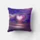 Dekorativ kudde med min 3d-design av ett vackert rosa hjärta flytande på att reflektera vatten med blå himmel med rosa och vita moln ovanför.