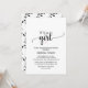 Det här rosa hjärtklappade svarta kalligrafin "det är en flicka"-inbjudningskort är perfekt för en strålande eller modern babydusch. Den minimalistiska utformningen för ett flicka har en underbar typografi och ett subtilt rosa hjärta. Baksidan har ett klassiskt löv och grenar mönster.