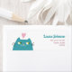 Rosa Heart Kawaii Cat Returadress Etikett