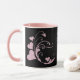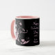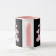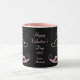 Den här söt Valentindagen mugg har en vacker hjärtsnurrande design från rosa och glitter mot en dramatisk svart bakgrund. Bilden skrivs ut två gånger på mugg, med text fält för att du ska kunna anpassa den i mitten. Det visar en Alla hjärtans dag hälsning, men du kan lätt ändra det till vad du vill. *Observera att bilden är utskriven och inte innehåller något egentligt glitter.