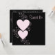 Rosa hjärta rosa Black sweet sixteen födelsedagsfest inbjudan.