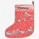 Rosa Helgdag jul Fåglar och Snö Stocking Stor Julstrumpa