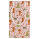 Kute- och julklapp med hand plockade som illustration av katt och hundar med ljus vid jul. Bakgrunden är rosa.