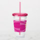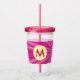 Akrylmugg med strålande heta rosa strimmor överallt. Liksom en jättestor ljus rosa soluppgång. Lite liknar tye-die, men det är det inte. Inkluderar mycket blekgul, cirkel i ett fraktalmönster. I cirkeln finns en rosa initial. Du kan ändra eller anpassa initialen till din egen eller den person du vill ge muggen till.