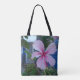Rosa hibiscus blomma och blå strandstuga i tok tygkasse