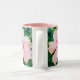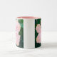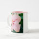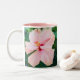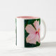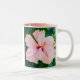 Kaffemuggen presenterar fotoet av en fint kulör rosa hibiskus som blommar i Hawaii.The-hibiskus, är en populär tropisk blomma.