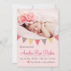 Rosa hjärta & banner - Ny bebis födelse tillkännag Meddelande
