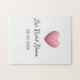 Rosa hjärta pastell retro bröllopsdusch datum boho pussel