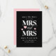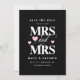Romantisk typografi för bröllop "save the date" i svart för en lesbisk bröllop med de framtida Fru och Fru skrivna i feta vita bokstäver med en virvlande och, och rosa hjärtan. Typografi lesbisk "save the date"-kort med "save the date" för de framtida fruarna i en svart, rosa och vit design i en ren men ändå romantisk design. Skicka ut era "save the dates" med detta svarta, rosa och vita lesbiska bröllop "save the date"-kort anpassat med era namn och bröllopsdetaljer men utan foto.