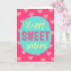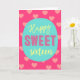 Detta roliga Sweet Sixteen-födelsedagskort har orden "Happy Sweet Sixteen" i trendig stil och ett spritt mönster av rosa hjärtan.