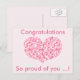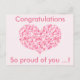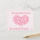 NewParkLane - Sött och modernt examens vykort, med ett hjärta, fyllt med ett mönster av små hjärtan i olika nyanser och storlekar rosa hjärtan, och citat: 'Grattis. Så stolt över dig ...!', i modern typsättning.