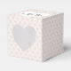Vitt hjärta med nygifta namn på mönster i rosa hjärta.