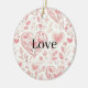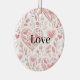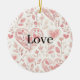 Rosa hjärtans blomsterkärlek julgransprydnad keramik