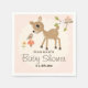 ETT SVIN OCH SÖT BABY HJORT SER UTAN VANLIGT UT PÅ EN LITEN BROWN-FÅGEL SOM UTFÖRS PÅ EN ORANGE MUSHROOM TOADSTOOL NÄSTA TILL EN DAISY FLÖDE. EN VÅR VITE CHERRY BLOMMAR TRÄD INNEHÅLLER ETT FÅGELS NEST MED EN ROSA ÄGG I DET. DU KAN ANPASSA PAPPERSSERVETT MED MAMMA NAMN- OCH SHOWER-DATUM. DENNA KÖP OCH ADORABLA KÖLTVÄNNER SOM KÖN NEUTRAL BABY SHOWER SHOWER DESIGN MED POLKA DOTS A SCALLOPED CREAM BAKGRUND OCH BLEK GRÖNT OCH JADE, BROWN, GULT OCH MOSS GRÖNT HUES ÄR PERFEKT FÖR ATT DEN NYA MAMMAN SKA FÖRVÄNTA SIG ETT FLICKA. ARTWORK © CHRISSY H. STUDIOS, LLC. ALLA HÖGER RESERVERADE.