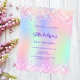En inbjudan till 21:a födelsedag för flickor och kvinnor. Framtill: En regnbåge, holografisk färgad med bakgrund i lila, rosa, myntgrönt. Dekorerad med rosa-gnistor. Anpassa och lägg till information om namn och party. Namn är skrivet med ett handskript stil, lila färgad brev.