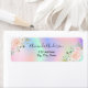 En modern holografisk bakgrund med enhörningsfärger och regnbågsfärger i rosa, lila, roséguld, mintgrön. Dekorerad med rosa blommor. Personifiera och lägg till ditt namn och adress. Perfekt för bröllopsfest, baby shower eller födelsedagsinbjudningar.