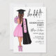 Rosa Hon gjorde det Studentfest Bjud in en kvinna i rosa klänning och rosa skor med rosa bukett och rosa blombukett. Studentmössa och studenten. Anpassa uppgifter om party och klassår över hela rosa studenten stal. Female porträtt teckning i student.