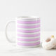 En kaffemugg med rosa horisontella ränder i ljusrosa, mörkrosa och vit. Anpassa den för att ändra bakgrundsfärger, välj typsnitt och lägg till anpassad text med mera, och spara även din design för senare.