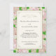 FÄRGPALETT: rosablommig rosa, kräm, offwhite, taupe och tan. DESIGNKOLLEKTION: Brudens och brudgummens initialer bildar ett monogram högst upp på inbjudan med eleganta typografiska svängar. Även om denna design ser ut som vintage, är allt nytt, originalkonst från Audrey Jeanne. För det formella vintagebröllop som lutar åt en elegant, romantisk och tidlös klassisk look. Denna vackra och sofistikerade antika typografiska design har en invecklad, elegant svängram med en bakgrund av originalkonst med rosa hydrangeor lagda över en handdesignad canvas-struktur med spetsmönster. Den har känslan av gammal spets och rik elegans. På baksidan finns en större version av samma bakgrund över samma spetssvängmönster. Samma design