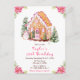 Denna eleganta och festliga födelsedagsinbjudan har ett akvarellhus av pepparkakor och vackra rosa julstjärnor. Texten kombinerar handskriven skrift och sans serif-teckensnitt för en stilren och modern look. Snorman, dekorerade tallar och julkransar lägger till en festlig touch. Detta är perfekt för jul födelsedagsfester.