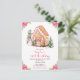 Rosa hus i pepparkåpssstil födelsedagsfest vykort