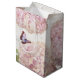 "Rosa Hydrangea Blommigt Butterfly Flower Script Art Medium Gift Bag." Elegant rosa hydrangeas i en engelsk stugträdgård fylld med fina rosa butterflies. En vit träbakgrund med mjukt handskrivet manus som är för omfattande avslutar sammansättningen. Det här teckningen har målats i oljepasteller av en internationellt licensierad konstnär och formgivare, Audrey Jeanne Roberts, upphovsrätt.