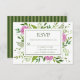 Detta charmerande och eleganta RSVP-kort med vackra, kloka, rosa brandkårer med flera kryddor och enastående grönt blad och koordinering av grön rand bakåt är perfekt för att passa in dina inbjudningar. Dina gäster kommer att ha lätt att svara på ditt bröllop. Det är ett utmärkt val för alla vårbrider eller sommarbrudar. Du kan enkelt göra den till en egen genom att välja Anpassa den här mallen och skriva in din svarstid. Om några sekunder visas dina unika och bedövande RSVP-kort!