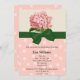 En vacker inbjudan till en vacker brud att vara! Den har en rosa vattenmiljö överst och en rosa och vit punkt mönster vid grund. En bild av ett band med grönten och bågar åtskilda. All text är anpassade.