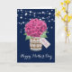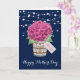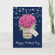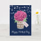 Vacker marinblå och rosa blomster Glad mors dag-kort med rosa hortensior och babysand i en masonburk. Anpassa enkelt denna mall för att skapa ett riktigt sött morsdagskort. Detta kort kan anpassas till alla tillfällen.