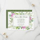 Den här rosa hydrangea sparar datumkortet som både är modernt och vismiskt. Dess vackra, kloka, vattenfärgsgröna och rosa vattenskogar med flera kryddor med sin koordinerande gröna rand tillbaka är perfekt för ett vår- eller sommarbröllop. Det är bara rätt att låta dina vänner och din familj veta när och var du planerar att gifta dig. I sekunder ser du hur korten kommer att se ut. Välj Anpassa den här mallen och skriv in informationen för att visa dina unika och fantastiska kort.