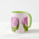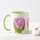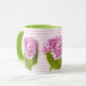 Försköna ditt kök inför vår- och sommarsäsongen med kaffekoppar tryckta med blommor. Denna kaffekopp har en pastellrosa och vitrandig bakgrund med en överlagring av rosa hydrangeablommor. Köp den till dig själv eller ge bort som present till den speciella personen. Färgkombinationen med vackra blommor gör denna kopp till en perfekt gåva till Mors dag eller en annan tillställning.