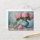 Rosa Hydrangeablommor och antika parfymflaskor Vykort