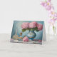 Rosa Hydrangeablommor och vintageparfymflaskor Kort