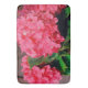 MaeFlowers ursprungliga fotografi på denna stora Bath Mat är en stängning av rosa vattenområden och deras taggiga löv i vår grönt. Blompetensens mittpompom fyller nästan fotot, omgiven av gröntens löv och bitar av andra blomskompompa på vardera sidan.