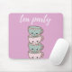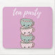 Musknappen "te party" har en slogan för "Cute rosa" och ett sött illustrerat tekopp.