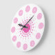 Cirklar och prickar i rosans nyanser går runt och runt den här väggklockan. Centrumet talade om antalet timmar vid yttre kant.