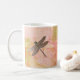 Rosa/grönt, vattenfärgsbakgrund med metall-utseendet drakfluga