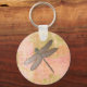 Söt-nyckelkedjan har vattenfärgsbakgrund i rosa/grönt och metall utseende drakonfluga