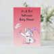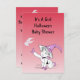 Det är en tjej Halloween-invigningskort för barn är lika söt som kom. De ljusröda inbjudningskorten erbjuder en liten häxa i baby som är klädd i rosa handskar, bootyer, halsdukar och en rosa häxor som pekar på ett litet vänligt fladdermus som mittbild på kortet, bokstäverna har satts till svart och placerats längst upp på kortet. Vänd kortet till baksidan för att hitta information om fullt party och samma lilla häxbild sitta till kortets höger. Alla formuleringar på både framsidan och baksidan av inbjudningskortet kan vara personlig med dina egna uppgifter om Halloween babydusch party.