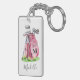 Den här söta nyckelkedjan i monogram har en golfpåse i snyggt med rosa vattenfärg fylld med klubbar, omgiven av ett litet grönt gräs. Konstruktionen innehåller på ett smart sätt ett enkelt serif-teckensnittsmonogram på påsen, som sömlöst blandas in i designen. Under monogrammet visas namn elegant i manustypografi, vilket ger en personlig beröring. Monogrammet finns för närvarande i en mörk grått, nästan svart, för att matcha säckens accenter, men det kan anpassas till färg. Designad med samma bild på båda sidor är nyckelkedjan roligt och snyggt perfekt för dam golfer i ditt liv. Det är en underbar gåva till jul, födelsedagar, Mor-dagen eller något särskilt tillfälle. Du kan justera anpassadet, typsnitt och färg för att matcha stil!