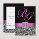 Stiliga, djärva bröllops-svarskort med ett svartvitt zebrarandigt mönster med ett rosa anpassningsbart monogram av två begynnelsebokstäver och ett tryckt rosa satinband med en fyrkantig juvelbroche med diamanter. Design av Elke Clarke ©. Anpassa med era monogramnamn och bröllop RSVP-text. Lägg till all er bröllops-svarsinformation på baksidan av kortet med hjälp av Zazzles lättanvända menyer. Du kan behöva välja "Anpassa" och använda redigeringsmenyn för att ändra avståndet så att det ser ut på skärmen som du vill ha det. Behöver du ett annat färg band eller zebrarandigt tryckmönster, vänligen kontakta luxuryweddinginvitations@gmail.com