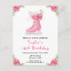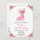 Denna eleganta och festliga födelsedagsinbjudan har en akvarell rosa isskor och vackra blommande rosa julstjärnor. Texten kombinerar handskriven skrift och sans serif-teckensnitt för en stilren och modern look. Detta är perfekt för vinter- och julfödelsedagsfester.