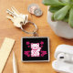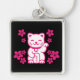 Rosa Japanska Maneki-neko Fyrkantig Silverfärgad Nyckelring
