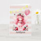 Ett rosa fairy 5-födelsedagskort, som kan vara personlig med hennes namn och ålder. Har rosa, guld och en jordgubbsflicka med en rosa ballong på framsidan. Invändigt kortmeddelande kan också vara personlig om det behövs. Ett personlig-kort för födelsedagskalender för dotter, guddotter, barndotter osv.