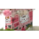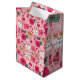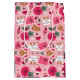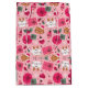 En lekfull mönster med söta djur och festliga dekorationer i rosa.