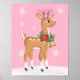Rosa jul Retro Rudolph Reindeer Art Print Poster